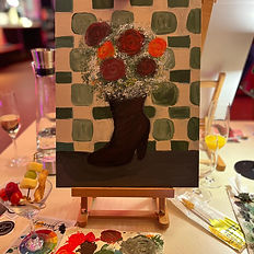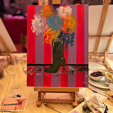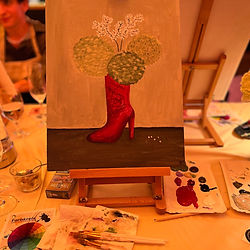 In 3,5 Stunden werdet ihr einen entspannten Abend mit leckerem Fingerfood Buffet (inkl.), Prosecco, sowie selbstgemachte Limonade for free den ganzen Abend während des Malens geniessen, als Warm up lassen sie sich Farben wortwörtlich Farben auf der Zunge zergehen. Das Motiv Blooming Boots gibt nur eine Richtung vor, wobei wir alle die Gemeinsamkeit des Schuhs und der Blumen haben, Farben und Formen könnt ihr frei nach eurer Stimmung wählen.